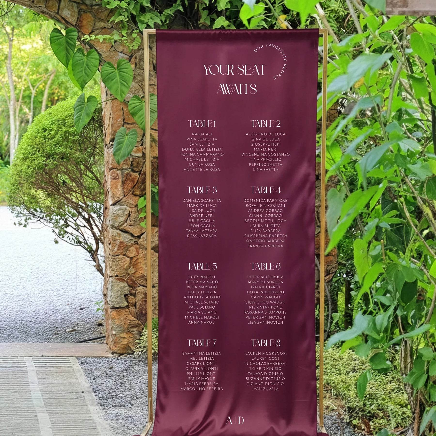 - A0 (840 x 1190 mm) – The ultimate choice for grand weddings with over 200 attendees.