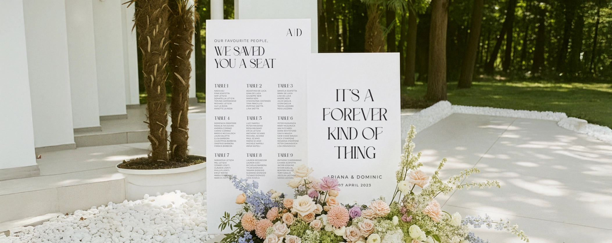 Wondering which wedding signage styles will complement your theme? Our Knowledge Base covers everything from design ideas to material choices.