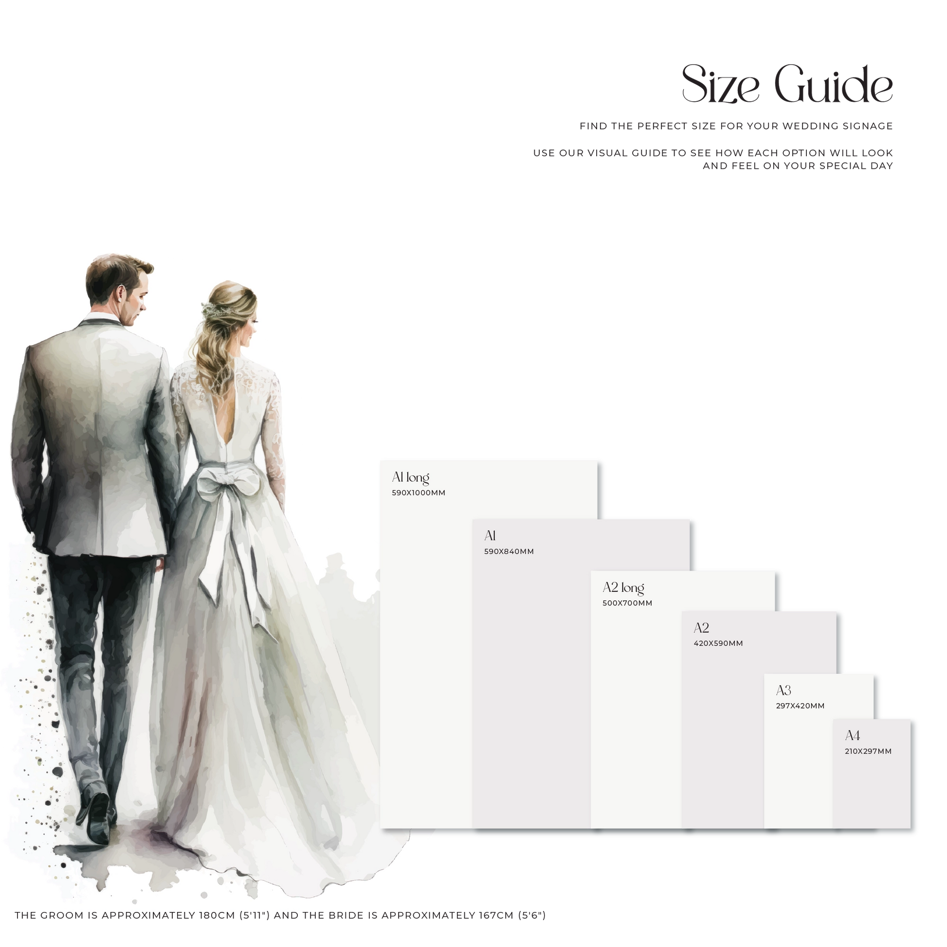 Use the drop-downs below to select your ideal wedding sign options and add it to your cart. Pick the size, and customisation details that best match your vision. - Step 2: Share Your Details