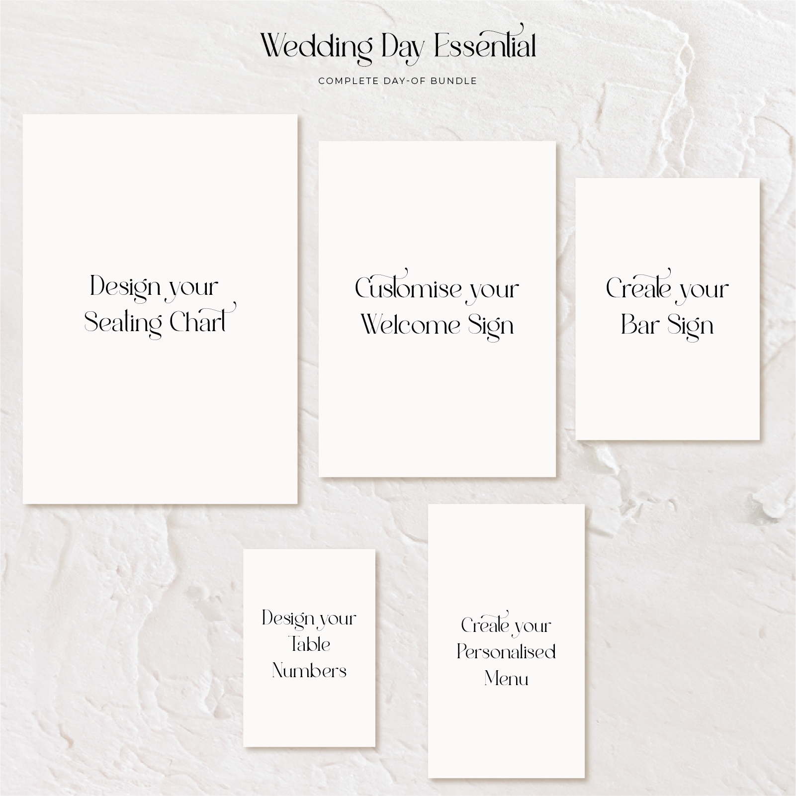 Make your day effortless and cohesive with our best-value bundle. The Wedding Day Essential includes every sign your guests will see first, designed to match perfectly and delivered ready to display.
